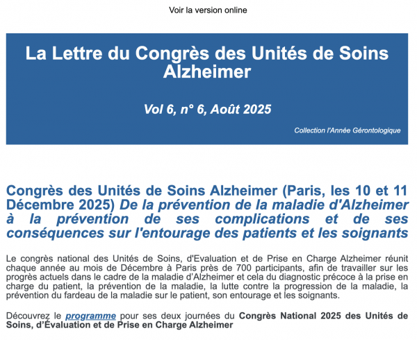 Lettre du congrès des Unités de soins Alzheimer vol 6, n° 6 – Août 2025