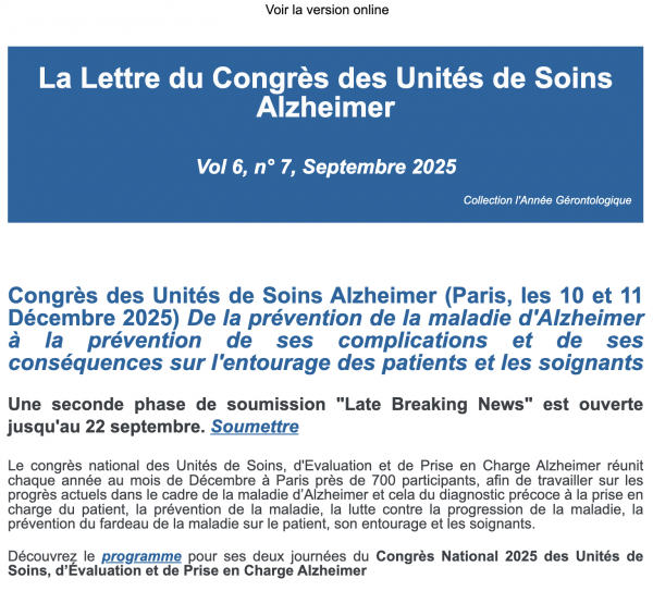 Lettre du congrès des Unités de soins Alzheimer vol 6, n° 7 – Septembre 2025