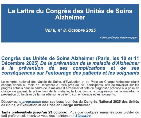 Lettre du congrès des Unités de soins Alzheimer vol 6, n° 8 – Octobre 2025