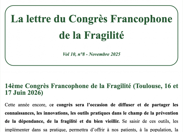 Lettre du Congrès Francophone de Fragilité n° 8 – Novembre 2025