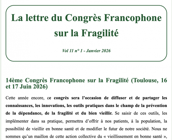 La lettre du Congrès Francophone sur la Fragilité vol 11, n° 1 – Janvier 2026