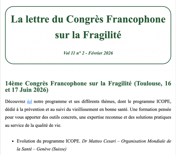 La lettre du Congrès Francophone sur la Fragilité vol 11, n° 2 – Février 2026