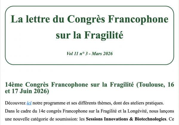 La lettre du Congrès Francophone sur la Fragilité vol 11, n° 3 – Mars 2026