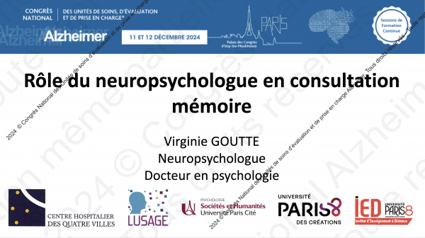 Rôle de la neuropsychologue en consultation mémoire