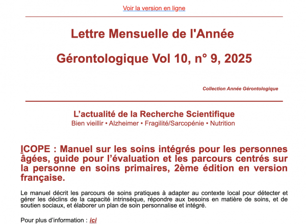 Lettre Mensuelle de l’Année Gérontologique Vol 10, n° 8 – Octobre 2025