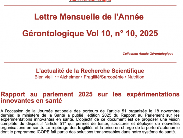 Lettre Mensuelle de l’Année Gérontologique Vol 10, n° 9 – Novembre 2025