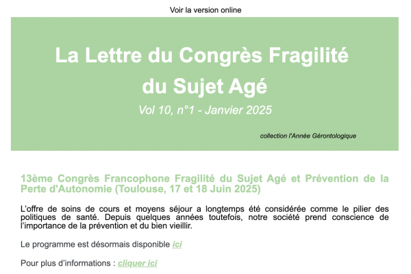 Lettre du Congrès Fragilité du Sujet Agé et Prévention de la Perte d’Autonomie n° 1 – Janvier 2025