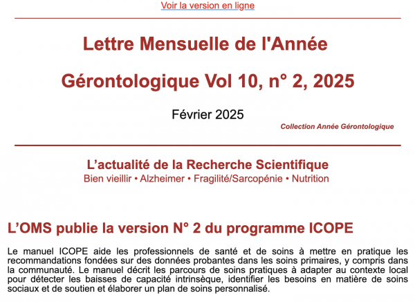 Lettre Mensuelle de l’Année Gérontologique Vol 10, n° 2 – Février 2025