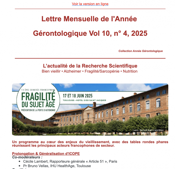 Lettre Mensuelle de l’Année Gérontologique Vol 10, n° 4 – Avril 2025